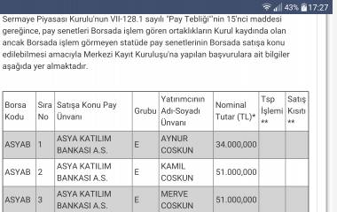 $ASYAB spknin duyurlar bölümünde kapanan hisse senetlerinin devri anlatılmış
