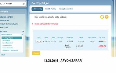 $AFYON Üstteki grafik, AFYON hisse senedinin 22.07.2015 tarihinde sistemin verdiği SAT sinyali sonrasında nasıl düştüğünü göstermektedir. O