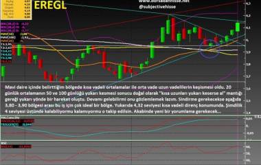 EGEEN İşlem hacmi bir hayli düştü ama Bollinger bandı henüz daralma emeresi göstermiyor. Kağıt 50 günlük ortalamasının tam üstünde kapattı.