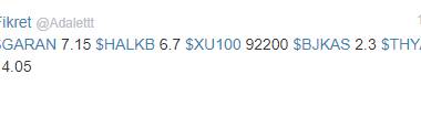 $GARAN 7.10 $HALKB 6.54 $XU100 89800 $BJKAS 2.27 $THYAO 13.97