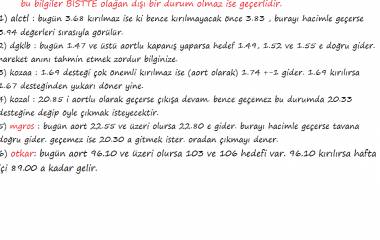pazartesi senaryolarım: $AFYON $ALCTL $ECZYT $KOZAL $MGROS $DGKLB $KERVT dir. $ODAS ve $GUSGR yi buraya yazamadım ama çıkış bekliyorum.YTD.