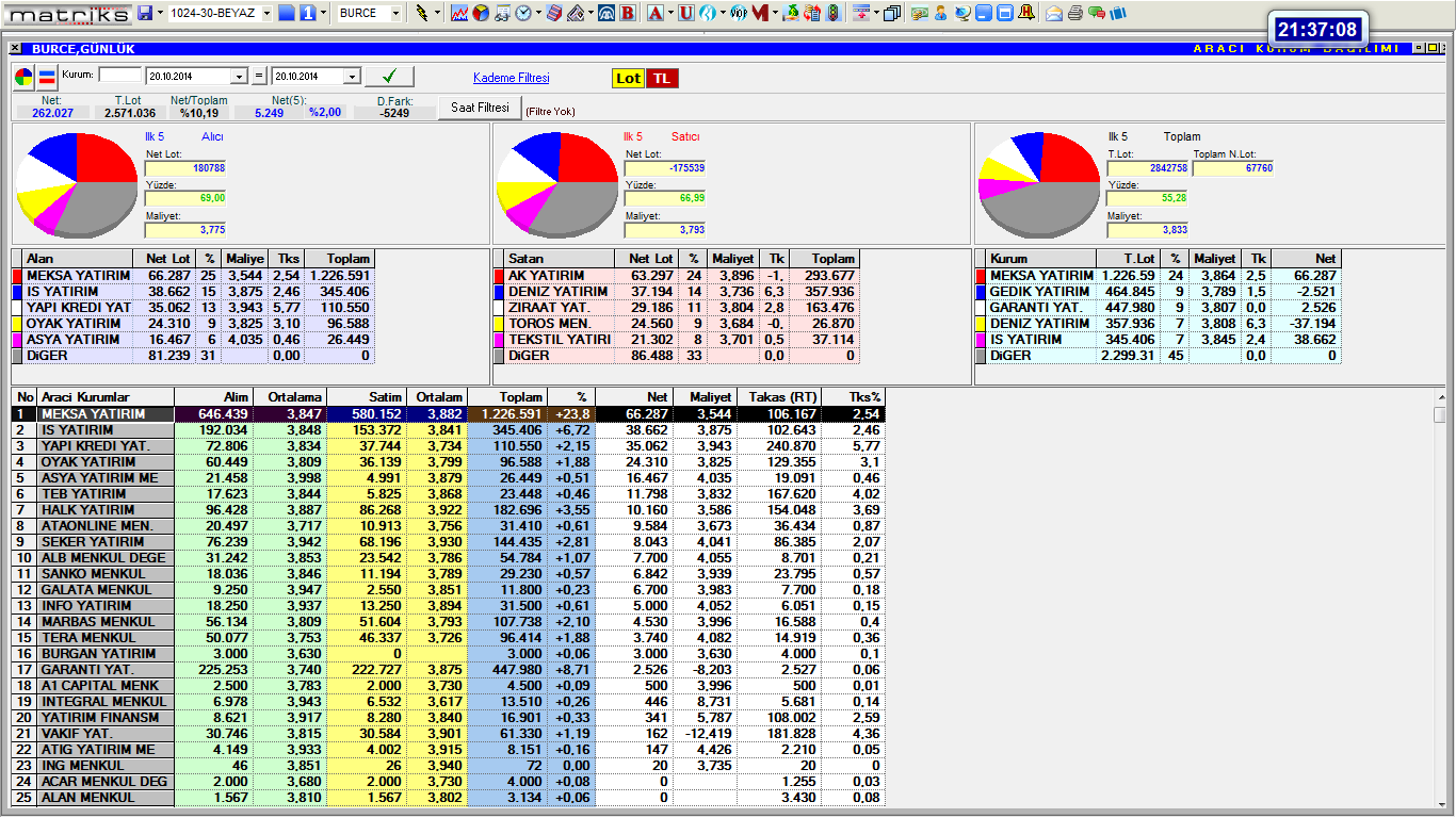 20 ekim 2014 pazartesi günü alım satım dağılımı, Takas verileri...