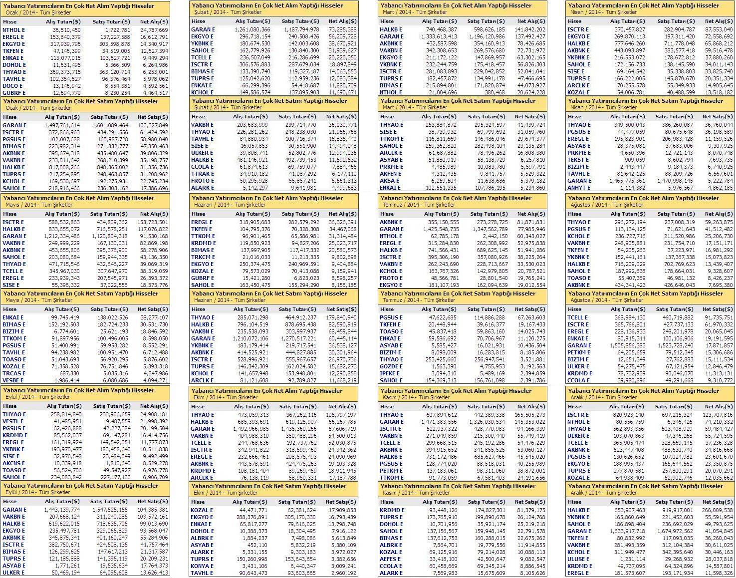 2014 Yılı Yabancıların Hisse Alım Satımları
