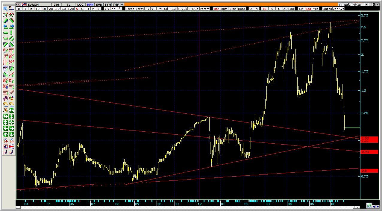 $EUROM keskin bıçak düşüyor bence dahada yolu var kanalın içine girerse biraz rahatlar ama yinede alım için uygun olacağını düşünmüyorum.YTD