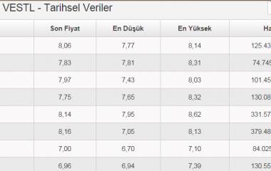 $VESTL 20 subatta 7.20 ...23 subatta 7 den aldım 25 şubatta cıksam tamammıs:)) ama hisseden beklentım 9 üstü yakında...ytd