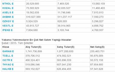 yabancıların şubat ayında en cok net alım yaptıgı ve satım yaptıgı hısseler ytd