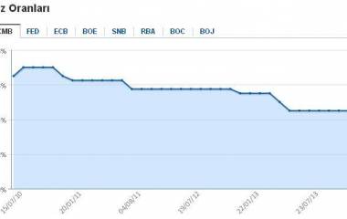 Yıllara göre TCMB faiz oranları. En son faiz artırımı 2010 yılında gerçekleşmiş.