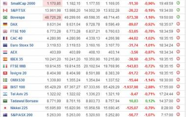 Dünya borsaları an itibariyle. ABD borsaları olumlu verilere rağmen düşüş kaydediyor.