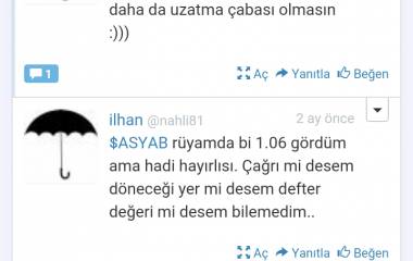 $ASYAB muhtemelen sabah aradın. Bilgi alınca sizlerle paylasirim arkadaşlar iyi gunler