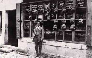 Altı farklı dilde (Osmanlıca, Ermenice, Rumca, İbranice, İngilizce, Rusça) tabelası olan bir fırın. Ortaköy, 1922 Alıntı:Arşiv tarih